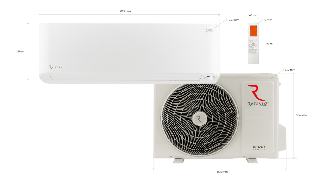 Prémiový model řady klimatizací Rotenso. Model Mirai (generace X) využívá mimořádně účinnou technologii zajišťující nejvyšší třídu energetické účinnosti A+++. Pokročilá invertorová technologie umožňuje nebývalou účinnost klimatizace i při poklesu venkovní teploty na -30 °C.